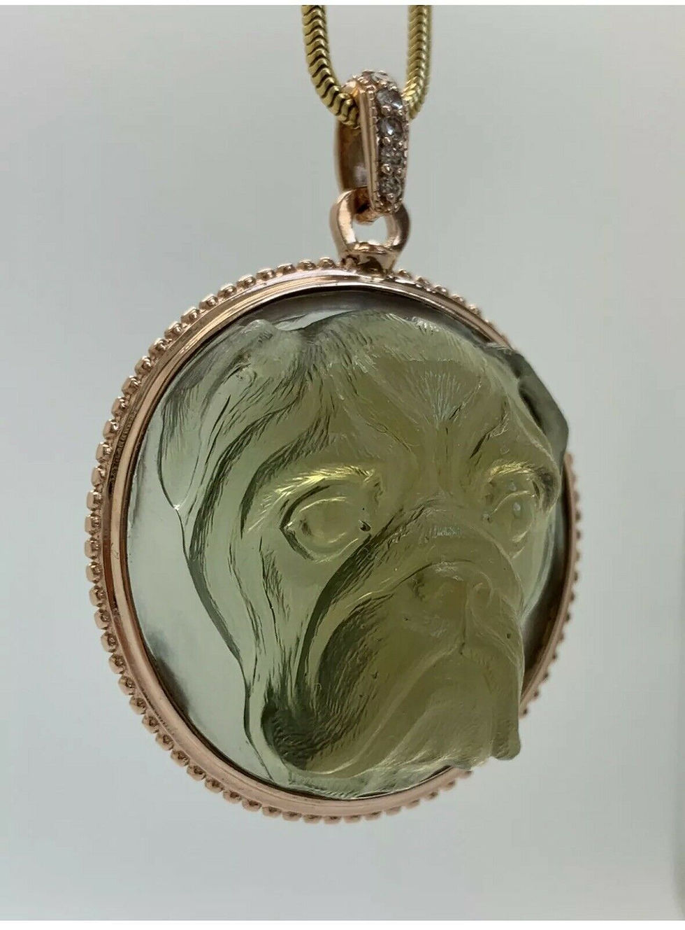 Antique Faberge Russian Carved Citrine Bulldog 14K Gold Diamonds Pendent
